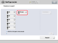 acepta tamaños de papel no disponibles con el origen de papel externo. Asegúrese de establecer tamaños que estén disponibles con el origen de papel externo.|