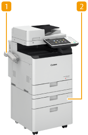 給紙カセットを1つ追加できます。給紙カセット1と異なるサイズの用紙をセットできるほか、収納スペースも利用できます。