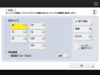 <よく使う用紙>を押して、よく使う用紙のサイズを登録しておけば、ワンタッチで呼び出すことができます。手差しトレイでよく使う用紙サイズと種類を登録する