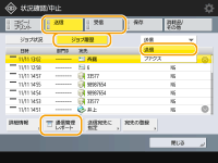 (状況確認/中止)を押して表示される状況確認画面から、コピー、プリント、Eメール送信、ファクス送受信、Iファクス送受信、保存スペース「アドバンスドボックス」への保存などの使用履歴を確認することができます。この使用履歴から、リストをプリントすることができます。![]() |