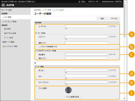 ユーザー情報は、(設定/登録) <管理設定>  <ユーザー管理>  <認証管理>  <認証ユーザーの登録/編集>からも登録できます。<認証ユーザーの登録/編集>