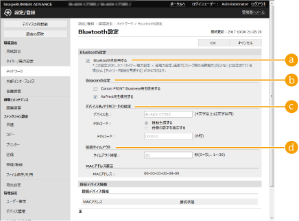 [Beaconの設定][AirPrint用を使用する]にチェックマークを入れます。