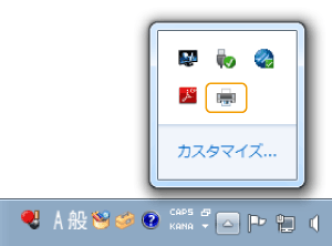 画面右下のタスクトレイにあるプリンターアイコンをダブルクリックする