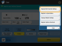 If you use the same settings every time for the Copy, Fax, or Scan function or want to save complicated settings, you can register settings as favorite settings, which can then be conveniently recalled.