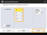 2 | Selezionare il tipo di busta. ![]() Per registrare una busta in formato personalizzato, premere <Personalizz.> <Avanti> quindi <X> o <Y> per specificare il lato, quindi utilizzare i tasti numerici per inserire la lunghezza del lato specificato. |