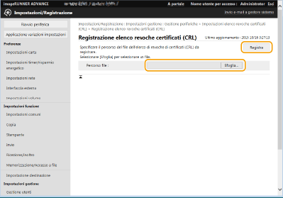 Fare clic su [Sfoglia...], specificare il file (CRL) da registrare e fare clic su [Registra].
