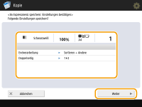 legen Sie die Kopiereinstellungen fest. Bildschirm <Hauptmenü>