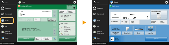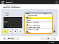 Sie können eine Schnelltaste für die Funktionen im Bildschirm <Hauptmenü> anlegen. Verwenden Sie diese Taste, um auf eine andere Funktion zuzugreifen, ohne zum Bildschirm <Hauptmenü> zurückzukehren. Zum Anlegen einer Schnelltaste melden Sie sich mit Administratorrechten an.