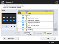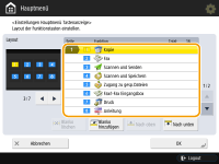 Die Zahlen in der Liste entsprechen den Elementen in der Anordnungsvorschau. Wählen Sie eine Funktion aus der Liste, und drücken Sie dann <Nach oben> oder <Nach unten>, bis sich die Funktion in der gewünschten Anzeigeposition befindet.