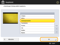 Drücken Sie <Einstellungen Hintergrundbild Hauptmenü>.