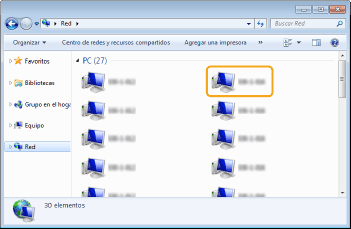 Seleccione [Red] o [Mis sitios de red] y haga doble clic en el ordenador configurado como servidor de impresión.