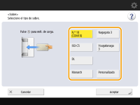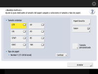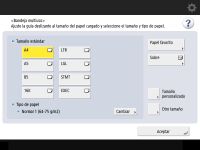 <Aceptar>. Registrar el tamaño y el tipo de papel de uso frecuente para la bandeja multiuso