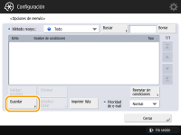 No puede especificar un servidor WebDAV como destino de reenvío de I-fax. Si especifica un destino para el que <Confirmar antes de enviar> está habilitado como destino de reenvío, no aparece la pantalla para introducir la contraseña. Se utilizará la contraseña registrada y se realizará el reenvío. <Confirmar antes enviar si incluye dest. fax> Los documentos con errores de reenvío se gestionan de acuerdo con la configuración de <Tratamiento archivos con errores de reenvío>. Puede guardar hasta 1.000 ajustes de reenvío. |