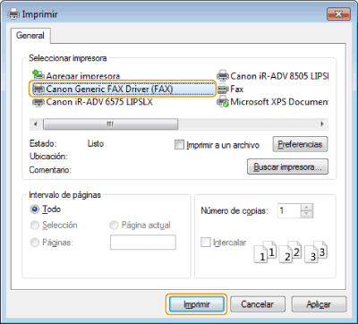 Seleccione el equipo y haga clic en [Imprimir] o [Aceptar].