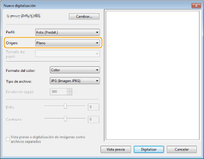 En la lista desplegable [Origen], seleccione la ubicación donde se ha colocado el original.