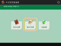 <팩스>, <이메일>, <I-팩스>, 또는 <파일>에서 수신인을 위해 사용할 기능을 선택합니다. 주소록에 수신인 등록