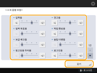 음량을 조정하거나 설정을 지정하고 <확인>를 누릅니다.