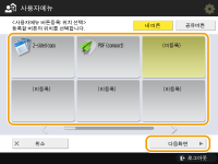 개인 인증 관리로 로그인하지 않은 경우 <내 버튼>을 누를 때 로그인 화면이 표시됩니다. 기기에 로그인하기 서버 기기의 원터치 버튼에 등록된 수신인이 업데이트되어도 클라이언트 기기의 퀵메뉴에서 원터치 버튼에 등록된 수신인은 업데이트되지 않습니다. 등록된 수신인에 전송할 수 없을 때에는 수신인이 업데이트 되었는지 확인합니다. |