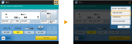 (시작)를 누르지 않고 사용자메뉴의 버튼을 누를 때 복사가 시작됩니다.