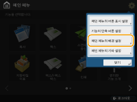 메인 메뉴에서 설정 버튼의 첫 페이지만 표시하려면  <메인 메뉴의 기타 설정>을 누르고 <1페이지에만 사용>을 <설정>로 설정합니다. |