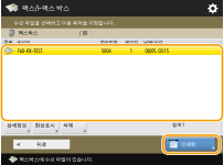 문서를 수신할 때 저장 위치의 URL을 이메일로 받도록 설정할 수 있습니다. 웹 브라우저의 주소 표시줄에 URL을 입력하기만 하면 원격 UI를 통해 컴퓨터에서 받은 문서의 내용을 확인할 수 있습니다. <팩스박스 설정/등록> 팩스 받은 편지함의 임의 레벨을 <내 플로우>/<공유 플로우> 버튼에 등록하면 작업을 신속하고 효율적으로 실행할 수 있습니다. |