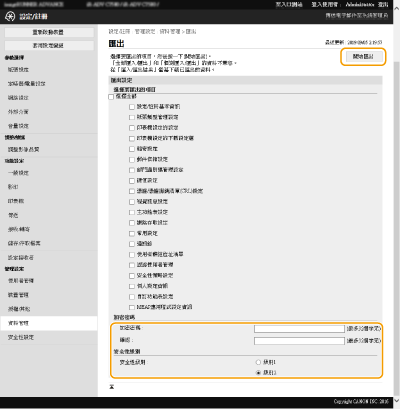 匯入匯出的設定資料時需要 [加密密碼] 中的密碼。使用英數字元。