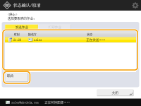 (停止)将暂停当前进行的发送/打印作业并显示<发送作业>/<打印作业>。