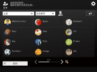 显示登录屏幕时,注册授权用户需要登录才能继续操作本机。若要登录,每个用户必须输入自己的用户名和密码。这样可以保证本机的安全性。另外,用户也可以根据自己的偏好自定义(个性化设置)显示画面和设置,尽可能方便地使用本机。根据用户管理设置的不同,登录屏幕上显示的项目可能有所不同。基于显示的项目执行登录操作。