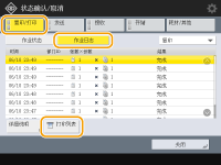 (状态确认/取消)时,显示状态监视/取消屏幕,允许查看每项功能的使用历史,比如复印、打印、发送电子邮件、发送/接收传真/互联网传真、在“高级存储箱”中存储文件等。同样可以通过此屏幕打印每项功能的使用历史。![]() |
