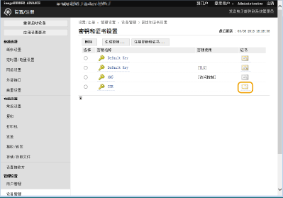 生成CSR的密钥会显示在密钥和证书列表屏幕上,但无法单独使用。要使用此密钥,需要注册稍后根据CSR颁发的证书。 将证书注册到密钥 |