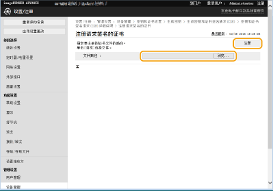 单击[浏览...],指定要注册的文件(证书),然后单击[注册]。