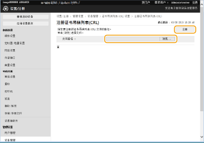 单击[浏览...],指定要注册的文件(CRL),然后单击[注册]。