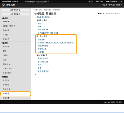 1 | 单击[逐个导入/导出]中的[设备设置(转发设置、地址簿、发送功能常用设置)]。 |