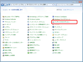コントロール パネルに[インデックスのオプション]が見つからない場合は、コントロール パネルをアイコン表示に変更してください。