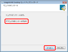 [マニュアルをインストールする]のチェックマークを外して[次へ]をクリックした場合は、追加できる項目が選択されていないことをメッセージで知らせます。