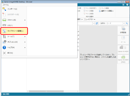 [ファイル]メニュー > [ライブラリーの管理]を選択します。