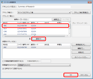 宛先を選択してダブルクリックしても、[送信先アドレス]に宛先が追加されます。