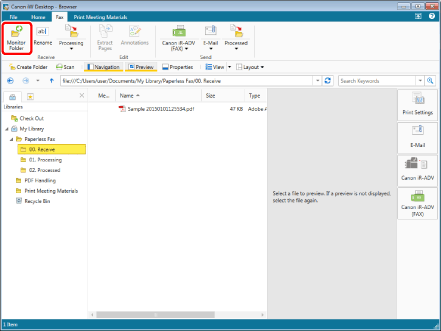 Select the folder to monitor in the Navigation Window or File List View Window of Desktop Browser.