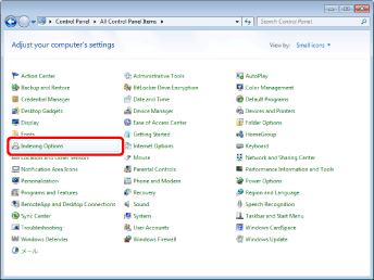 If you cannot find [Indexing Options] in the Control Panel, change the Control Panel to the icon display.