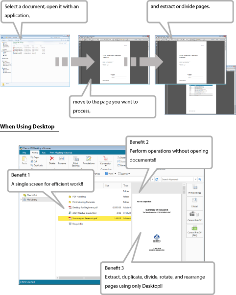 If you select [Do not keep original document], the two divided documents are registered to the library. The original document is not retained.