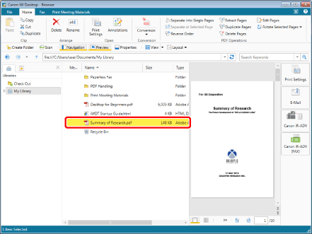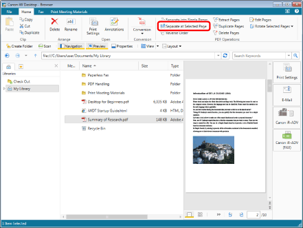 If you select [Keep original document], the two divided documents are registered to the library, and the original document before division is retained in the library.