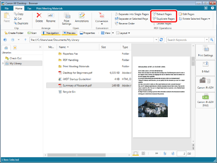 Each of the extracted or duplicated PDF documents is saved with "_selected page number" appended at the end of the source document name. The page number is displayed according to the number of digits in the number of pages before extracting or duplicating. However, if another document with the same name exists in the destination folder, "(2)" is added at the end of "_selected page number".