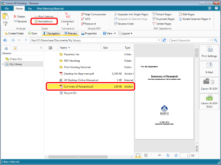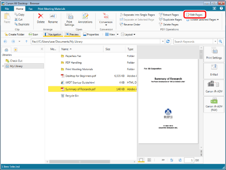 You can also rotate the page and save the document by clicking [Rotate Selected Pages Left 90 Degrees and Save] or [Rotate Selected Pages Right 90 Degrees and Save] on the Preview Window.
