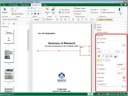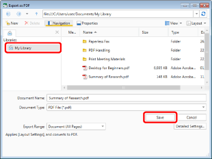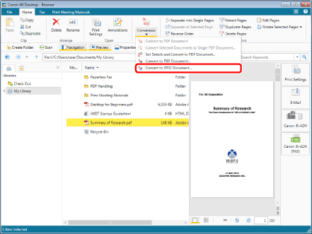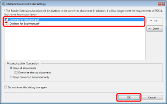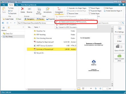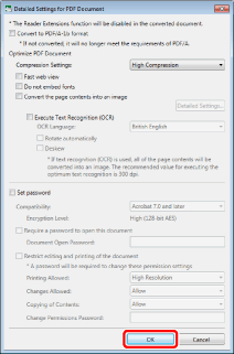 If you select [Set Details and Convert to PDF Document], [Detailed Settings for PDF Document] is displayed.