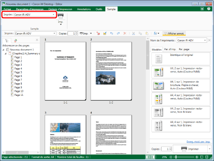 De plus, la zone d'aperçu est mise à jour en fonction de l'imprimante sélectionnée.