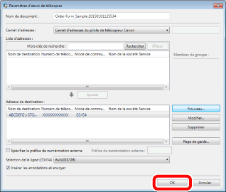 Cliquer sur [OK] pour envoyer la télécopie au destinataire.
