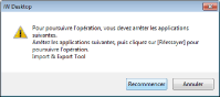 Suivant votre environnement informatique, il se peut qu'un message vous invitant à fermer certaines applications s'affiche lors du processus d'installation. Acceptez le message qui s'affiche pour poursuivre l'installation de Desktop.