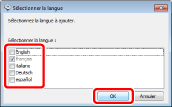 La fonction "Modification de Desktop" vous permet d'ajouter une langue d'affichage après l'installation de Desktop.