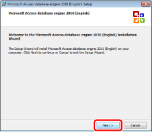 L'écran [Microsoft Access database engine 2010 (English) Setup] s'affiche.