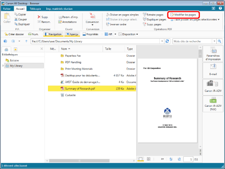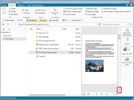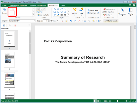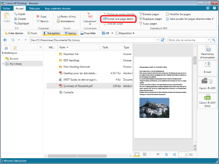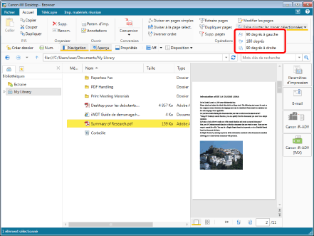 Vous pouvez également faire pivoter la page et enregistrer le document en cliquant sur [Faire pivoter les pages sélectionnées de 90 degrés à gauche et enregistrer] ou sur [Faire pivoter les pages sélectionnées de 90 degrés à droite et enregistrer] dans la Fenêtre d'aperçu.